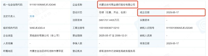 2024年,内蒙古农商银行筹建工作就正式启动。去年8月,内蒙古农商银行筹建工作小组发布公告称,内蒙古自治区农村信用社联合社、93家内蒙古农信法人机构及其发起设立的26家区内村镇银行,已分别完成内部公司治理程序,将以新设合并方式组建内蒙古农商银行。